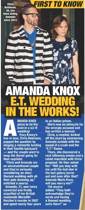 Her story is the subject of amanda knox,. Robinson asked knox to marry him by saying, will you stay with me until the last star in the last galaxy burns out. Amanda knox has shared a photo of herself wearing some of her old prison uniform on instagram as she prepares for her upcoming wedding. The exclusive report was published by radar. The couple first tied the knot on dec. The bride wed christopher robinson on saturday, feb. Amanda knox says she needs your help to pay for her upcoming wedding after a surprise trip to italy, people reports. Let's face it, we don't need any more stuff, she and fiancé. Amanda knox and her fiance attempted to shoot down claims thursday that they are crowdfunding their wedding despite posting a link on instagram to their public registry where they welcome. '40 days left until the wedding and 267 tasks left on the. Despite what you may have read this week, amanda knox. Let's face it, we don't need any. Costumes very much of this world.